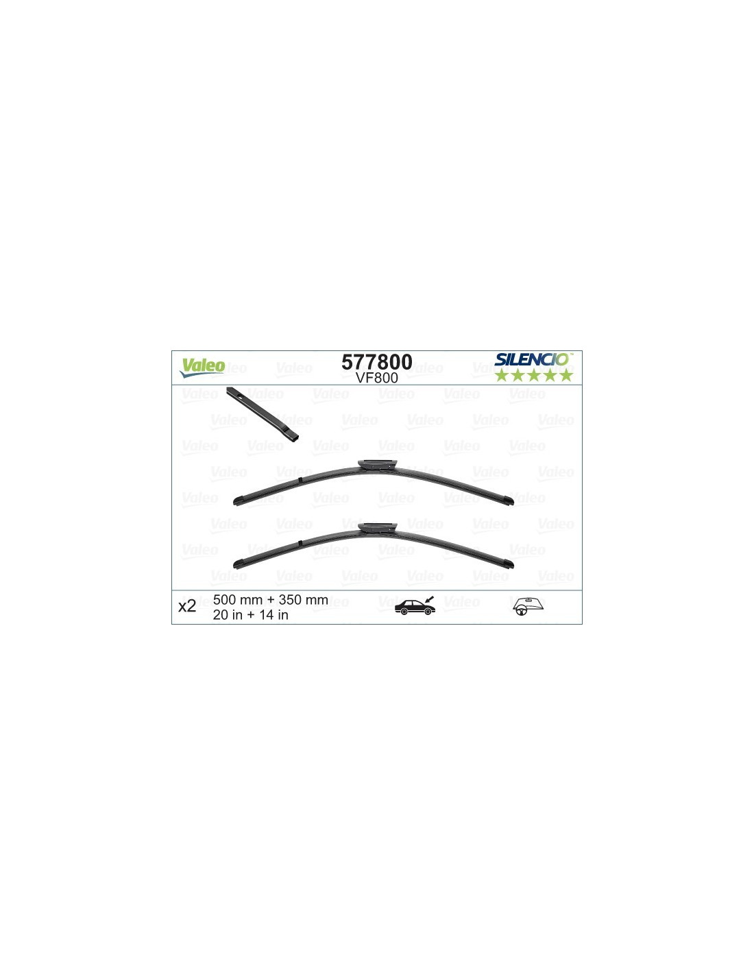 Logu slotiņas Valeo Silencio VF800. Kods: VF800, Garums: 500/350.